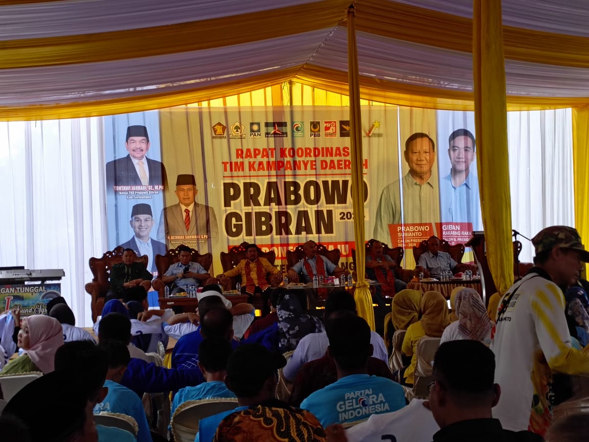 SAROLANGUN – Partai koalisi beserta kader yang tergabung dalam Tim Kampanye Daerah (TKD) Prabowo-Gibran Kabupaten Sarolangun menggelar rapat konsolidasi di Posko Pemenangan di Sekretariat DPD Partai Golkar Sarolangun pada Sabtu (13/01).