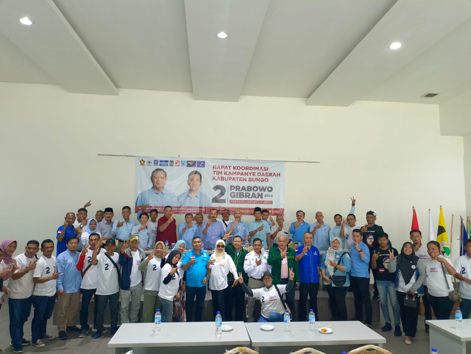 “Alhamdulillah Rakor TKD Prabowo-Gibran berjalan lancar dan sukses. Target kita jelas Prabowo-Gibran menang di kabupaten Bungo,” kata Indones kepada awak media.