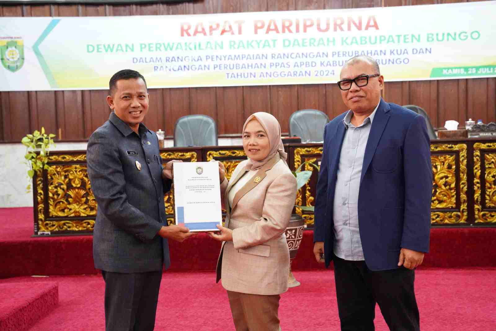 Rapat tersebut berlangsung di ruang paripurna DPRD Bungo, Kamis pagi (25/07)2024) yang di pimpin langsung oleh Ketua DPRD Bungo Jumari Ari Wardoyo, dan di hadiri oleh anggota DPRD Bungo, unsur Forkompinda, staf ahli Bupati, asisten, kepala OPD, para Kabag, camat, lurah dan para unsur vertikal.
